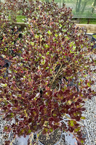Compact growing shrub with glossy, dark burgundy foliage. Plant in full sun or partial shade, free-draining soil. Requires sun to maintain colour. A great contrasting colour in the garden. Trim to maintain a dense growth habit. Suitable for coastal locations. Protect from heavy frost.