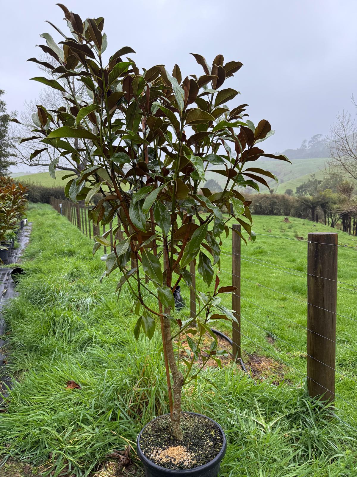 Compact, evergreen variety of the popular Magnolia grandiflora. It features glossy, dark green leaves with rich brown, felted undersides that provide year-round appeal. During spring and summer, it produces large, fragrant, creamy-white flowers that contrast beautifully against the foliage. Its neat, upright habit and moderate growth rate make it a perfect choice for smaller gardens or as a feature specimen in New Zealand landscapes.
